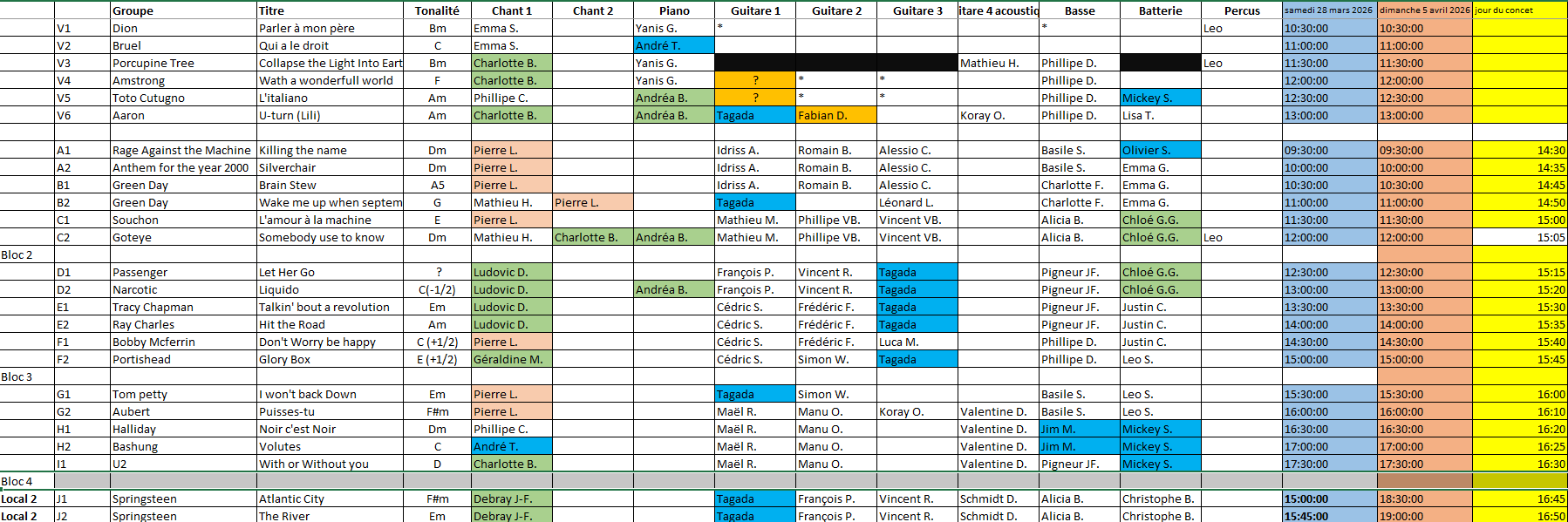 2) Le planning pour le concert :